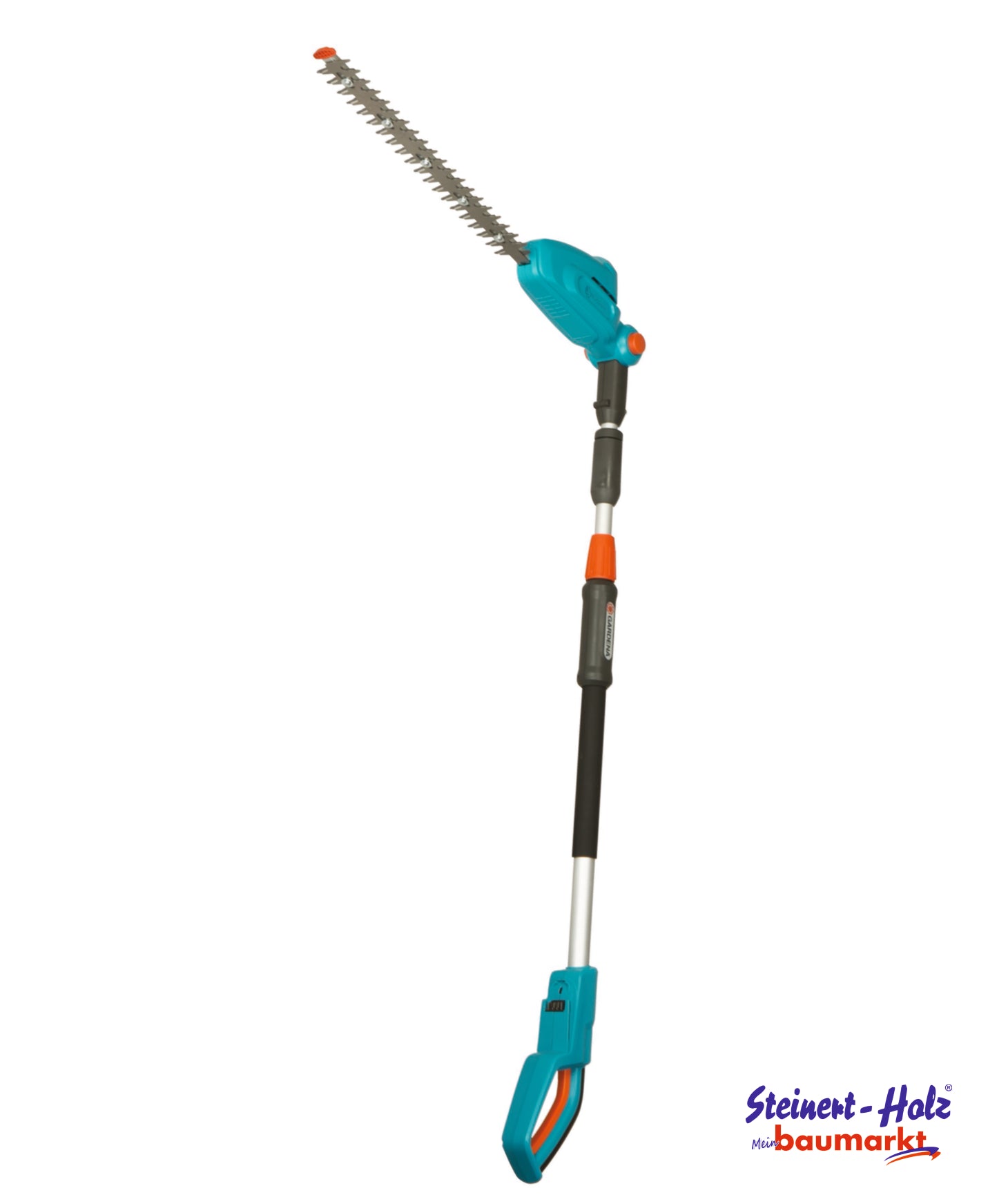 Mit der GARDENA Akku-Teleskop-Heckenschere THS 42/18V P4A lässt sich der Schnitt hoher Hecken ganz entspannt erledigen. Dank des einstellbaren Teleskopstiels lässt sich die Hecke in Form bringen und man bleibt dabei sicher mit beiden Füßen auf dem Boden. Durch den ergonomisch geformten Griff und intelligenter Schwerpunktverteilung liegt das Gerät immer perfekt in der Hand. Um das Messer in die richtige Schneidposition zu bringen, lässt sich der Schneidkopf einfach abwinkeln. So kann auch das Heckendach komfortabel und exakt geschnitten werden. Bodendecker lassen sich damit ebenfalls bequem schneiden, ohne dass man dabei in die Knie gehen muss. Die optimale Messergeometrie garantiert einen effizienten, sauberen und schnellen Schnitt. Die Energie liefert ein 18 V System Akku der Power for All Alliance, basierend auf der Akku-Technologie von Bosch. Dieser passt in alle neuen 18V Gartengeräte von GARDENA der Power For All Alliance, kann aber auch markenübergreifend mit zahlreichen weiteren Produkten aus der Allianz rund um das gesamte Zuhause verwendet werden. (Akku und Ladegerät nicht im Lieferumfang enthalten).