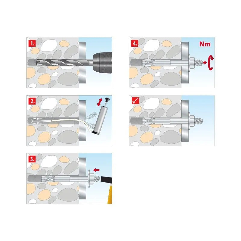 Der galvanisch verzinkte TOX Bolzenanker S-Fix Pro ist ideal geeignet für den Innenbereich und bietet sowohl in gerissenem als auch ungerissenem Beton Befestigungen mit extremem Halt - das bedeutet eine hohe Sicherheit bei sämtlichen Schwerlast-Projekten, so z.B. von Geländern, Stahlkonstruktionen oder Werbetafeln. Mit nur geringen Achs- und Randabständen sorgt der Bolzenanker S-Fix Pro für randnahe Montagen und kleine Ankerplatten. Dazu ist die Befestigung nicht nur sofort belastbar, sondern auch besonders angenehm vorzunehmen und sicher: Der integrierte Einschlagschutz schützt das Gewinde und die praktische Setztiefenmarkierung ermöglicht eine optische Montagekontrolle. Seine hohen Qualitäten beweist dieser flexibel anwendbare Schwerlastanker selbst unter extremen Bedingungen, so weist er die Feuerwiderstandsklasse R120 auf und ist erdbebengeprüft C1 und C2 - daneben ist der Schwerlastdübel auch bauaufsichtlich zugelassen. Geliefert wird ein Bolzenanker S-Fix Pro M10x105/25. Der rote Allzweckdübel hat TOX bekannt gemacht: Auf dem Gebiet der Allzweckdübel ist das Unternehmen führend. Das umfassende Sortiment ist konsequent auf die Bedürfnisse der Kunden und Endanwender ausgerichtet. Die Marke TOX steht für innovative Produkte und kompetente Lösungen im Bereich der Befestigungstechnik.