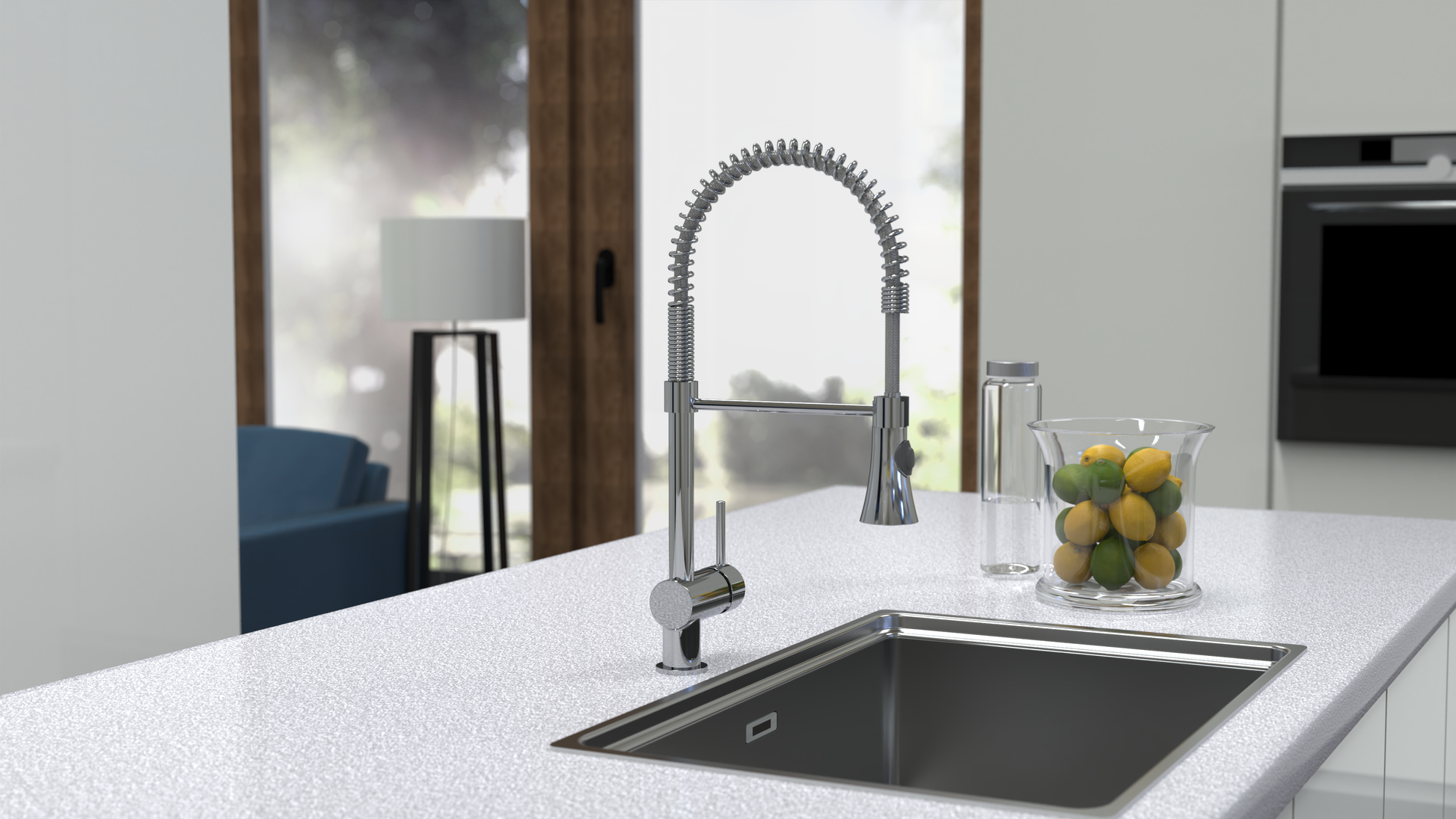 Ressourcenschonend handeln auch im Kleinen? Dann ist diese Einhebel-Mischbatterie mit Cold-Start Technik genau richtig, denn sie gewährt bei senkrechter Position des Bedienhebels nur den Zufluss von Kaltwasser. Oft völlig ausreichend. Mit dem 360° schwenkbaren Auslauf kann die Küchenarmatur komfortabel zur Seite gedreht werden und erleichtert z.B. das Säubern der Spüle. Dieser Wasserhahn ist ideal für den Einsatz bei Doppelspülbecken. Dank der 2-fach verstellbaren Geschirrbrause bietet der Wasserhahn flexible Einsatzmöglichkeiten in der Küche. Zum Beispiel zum Waschen von Obst und Gemüse oder aber für die Vorreinigung, bevor das Geschirr in den Geschirrspüler einsortiert wird. In der Mischbatterie Küche ist eine geräuscharme Qualitäts-Kartusche mit langlebigen, keramischen Dichtungen verbaut. Bei Bedarf kann die Kartusche selbständig gewechselt werden. Abgerundet wird der Wasserhahn für die Küche durch die einfache Montage. Die mitgelieferte Zentralverschraubung ist praktisch, selbsterklärend und kann ohne Fachkenntnisse schnell umgesetzt werden. Im Lieferumfang enthalten ist ein vollständiges Montageset und eine mehrsprachige, bebilderte Montageanleitung. Die korrosionsbeständigen Anschlussschläuche (500 mm) an das Hauswassersystem sind flexibel und leicht zu montieren. Die in der Küchenarmatur verbaute Mischdüse vom Markenhersteller steht für Langlebigkeit und ein homogenes Strahlbild.