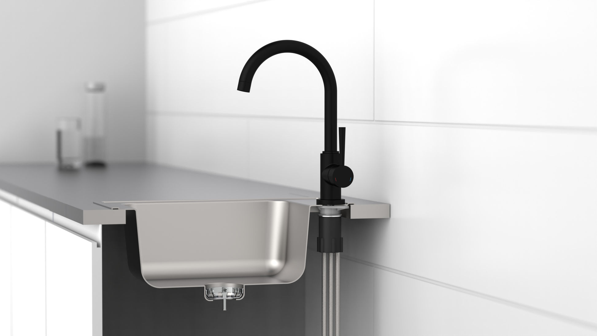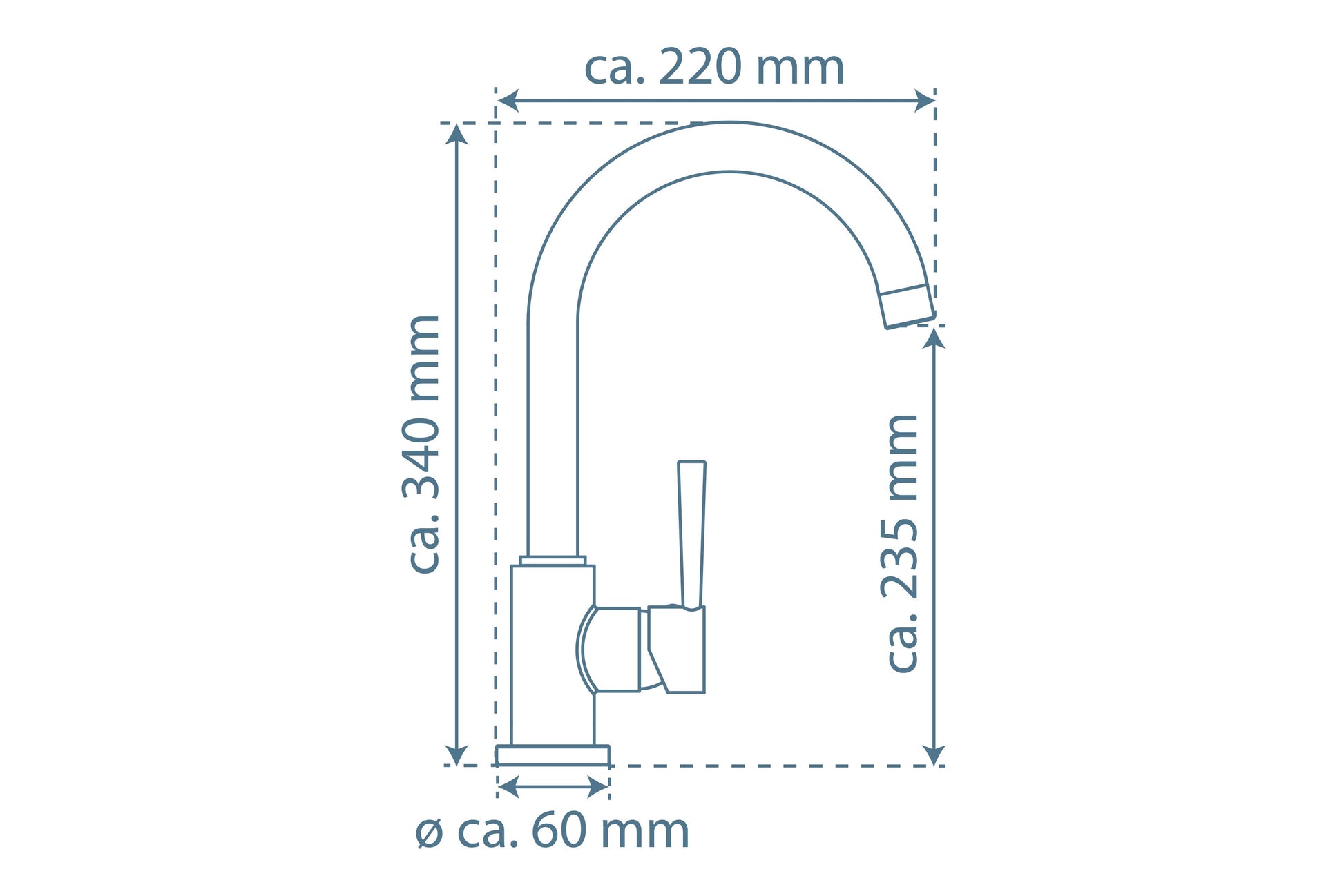 Bei diesem Wasserhahn handelt es sich um eine Niederdruckarmatur, die ausschließlich bei drucklosen Untertischgeräten/Kleinspeichern zum Einsatz kommt. Sie wird mit drei flexiblen Anschlussschläuchen geliefert. Eine Niederdruckarmatur ohne lästiges Nachtropfen? Kein Problem mit dem neuartigen Dripless-Strahlregler vom Marktführer Neoperl. Dessen innovative Konstruktion mit Anti-Nachlauf-Funktion verhindert das Nachtropfen bei geschlossenem Wasserhahn, wie bei vielen herkömmlichen Niederdruckarmaturen üblich. Zudem erzeugt der neuartige Strahlregler einen eleganten, kristallklaren und tropffreien Wasserstrahl. Ressourcenschonend handeln auch im Kleinen? Dann ist diese Einhebel-Mischbatterie mit Cold-Start Technik genau richtig, denn sie gewährt bei senkrechter Position des Bedienhebels nur den Zufluss von Kaltwasser. Oft völlig ausreichend. Mit dem 360° schwenkbaren Auslauf kann die Küchenarmatur komfortabel zur Seite gedreht werden und erleichtert z.B. das Säubern der Spüle. Dieser Wasserhahn ist ideal für den Einsatz bei Doppelspülbecken. In der Mischbatterie Küche ist eine geräuscharme Qualitäts-Kartusche mit langlebigen, keramischen Dichtungen verbaut. Bei Bedarf kann die Kartusche selbständig gewechselt werden. Abgerundet wird der Wasserhahn für die Küche durch die einfache Montage. Die mitgelieferte Zentralverschraubung ist praktisch, selbsterklärend und kann ohne Fachkenntnisse schnell umgesetzt werden. Im Lieferumfang enthalten ist ein vollständiges Montageset und eine mehrsprachige, bebilderte Montageanleitung. Die korrosionsbeständigen Anschlussschläuche (500 mm) an das Hauswassersystem sind flexibel und leicht zu montieren.