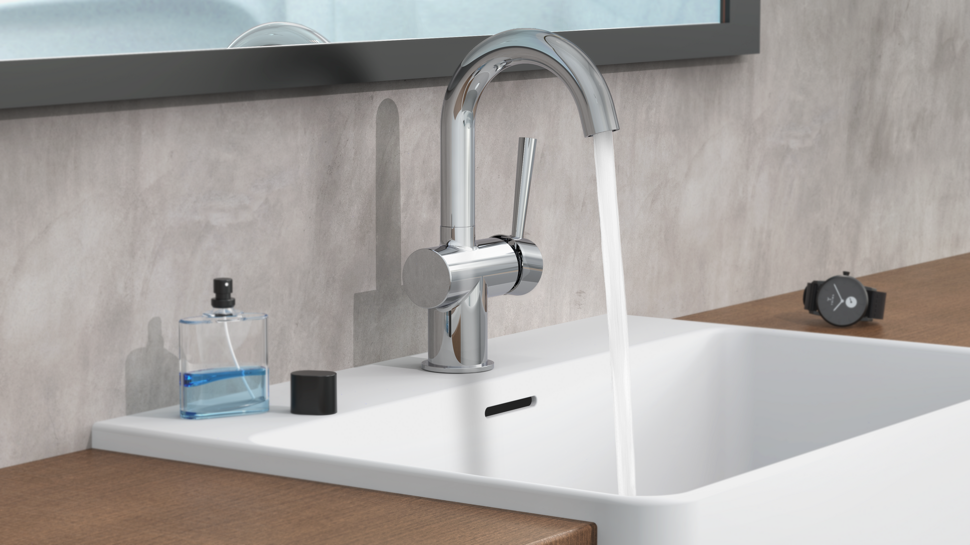 Ressourcenschonend handeln auch im Kleinen? Dann ist diese Einhebel-Mischbatterie mit Cold-Start Technik genau richtig, denn sie gewährt bei senkrechter Position des Bedienhebels nur den Zufluss von Kaltwasser. Bei vielen Waschgängen völlig ausreichend. In der Mischbatterie Bad ist eine geräuscharme 35 mm Qualitäts-Kartusche verbaut mit langlebigen, keramischen Dichtungen. Bei Bedarf kann die Kartusche selbständig gewechselt werden. Die hochwertige Kartusche mit einstellbarer Temperaturbegrenzung minimiert das Risiko für Verbrühungen und bietet mehr Sicherheit für die ganze Famile. Mit dem 360° schwenkbarem Auslauf kann die Waschbeckenarmatur komfortabel gedreht werden und erleichtert z.B. das Säubern des Waschbeckens oder sorgt für mehr Platz. Einfach schnell mal zur Seite drehen. Der Wasserhahn Bad verfügt über eine Waschbecken Ablaufgarnitur mit Zugstange (Stangen-Exzenter) zum Öffnen und Schließen des Abfluss Stöpsels. Passend zu allen Waschtisch-Siphons mit 11/4 - Ø ca. 4 cm Anschluss. Die in der Badarmatur verbaute Mischdüse vom Markenhersteller steht für Langlebigkeit und ein homogenes Strahlbild. Im Lieferumfang enthalten ist ein vollständiges Montageset und eine mehrsprachige, bebilderte Montageanleitung. Die korrosionsbeständigen Anschlussschläuche (400 mm) an das Hauswassersystem sind flexibel und leicht zu montieren. Abgerundet wird die Badarmatur durch ihre einfache Montage. Die mitgelieferte Zentralverschraubung ist praktisch, selbsterklärend und kann ohne Fachkenntnisse schnell umgesetzt werden.