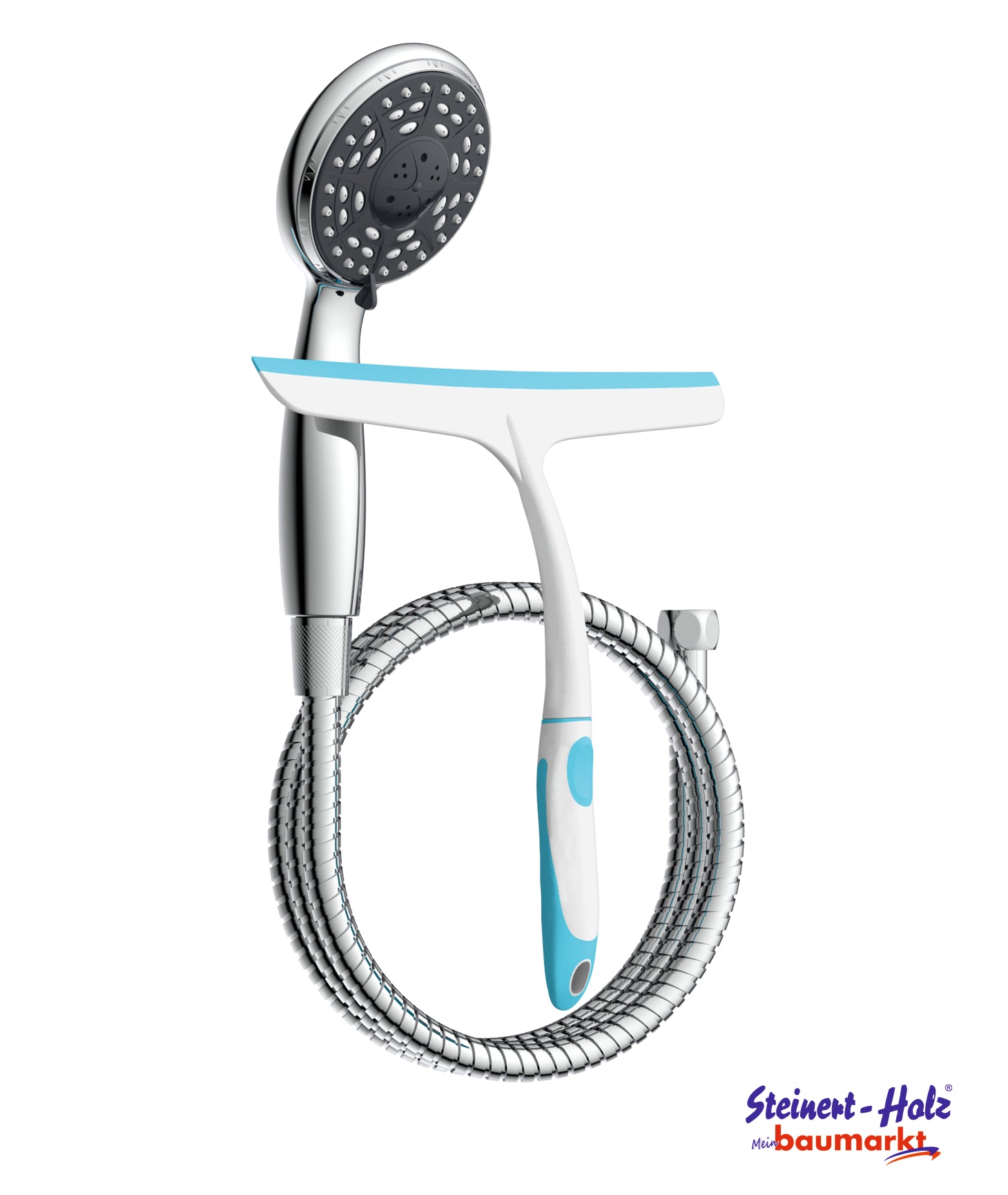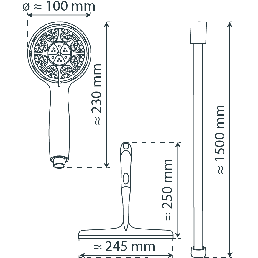 Duschbrause mit Schlauch und praktischem Duschabzieher. Dank der Breite von ca. 25 cm lassen sich Glasflächen und Fliesen schnell und einfach von Wasserrückständen befreien. Die Wellness Handbrause verfügt über drei Strahlarten, individuell einstellbar je nach Duschtyp. Die nachhaltige Wasserstopp-Funktion, z.B. beim Einseifen, spart Wasser und Energie. Gut für den Geldbeutel - gut für die Umwelt. Brausekopf mit Antikalk-Noppen für die einfache Entfernung von Kalkrückständen Der genormte 1/2 Zoll Anschluss ist mit handelsüblichen Brauseschläuchen kompatibel. Der hochwertige Edelstahl-Brauseschlauch hat einen Standard ½ Anschluss (Ø ca. 1,9 cm) und ist besonders knickfest Länge: ca. 150 cm