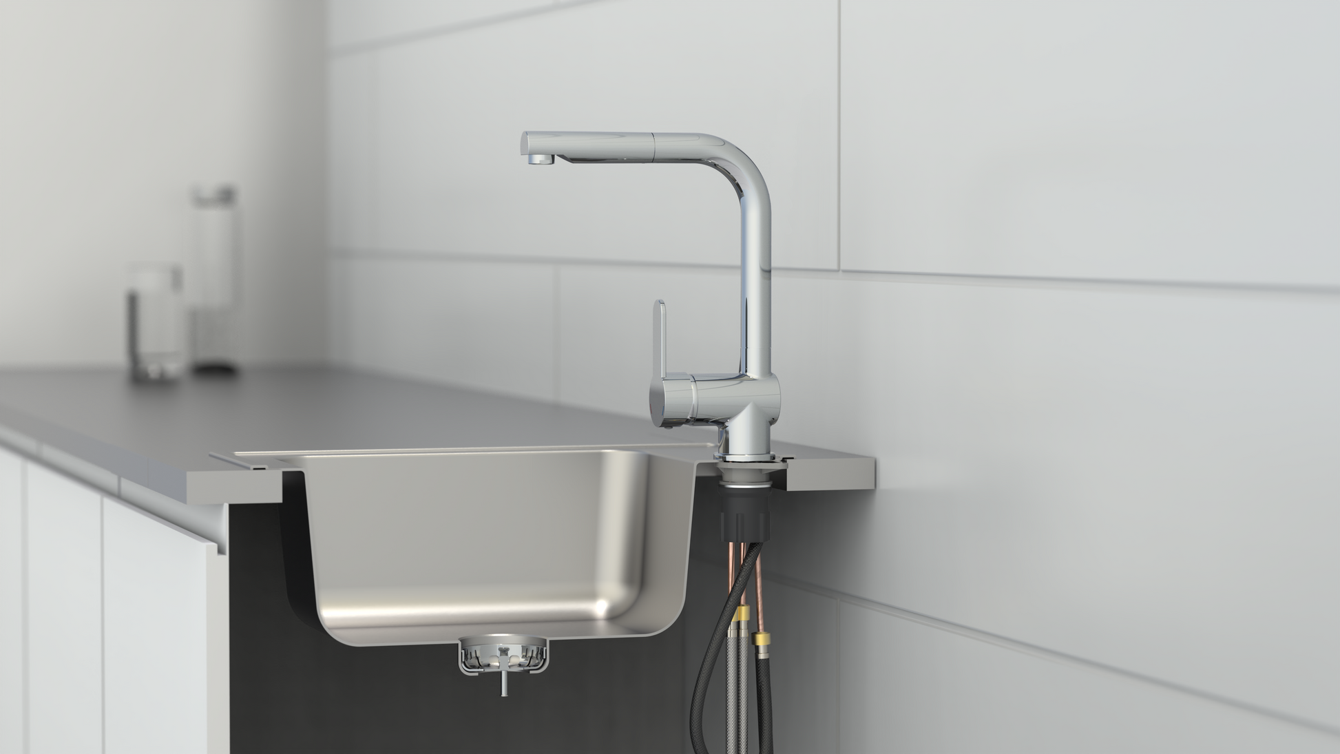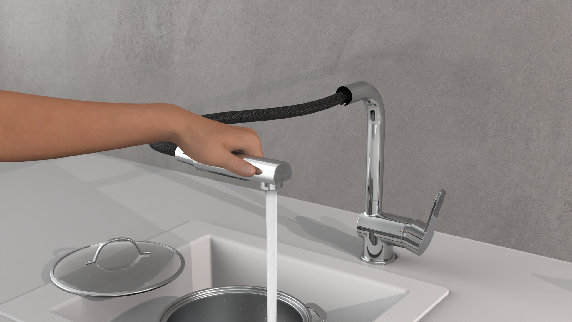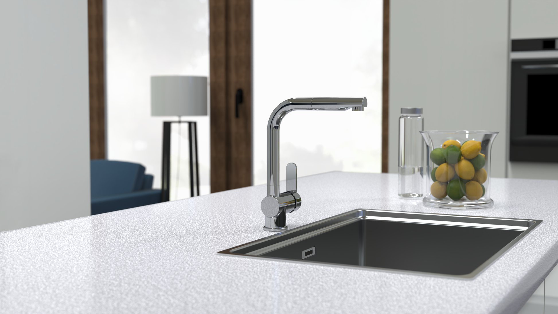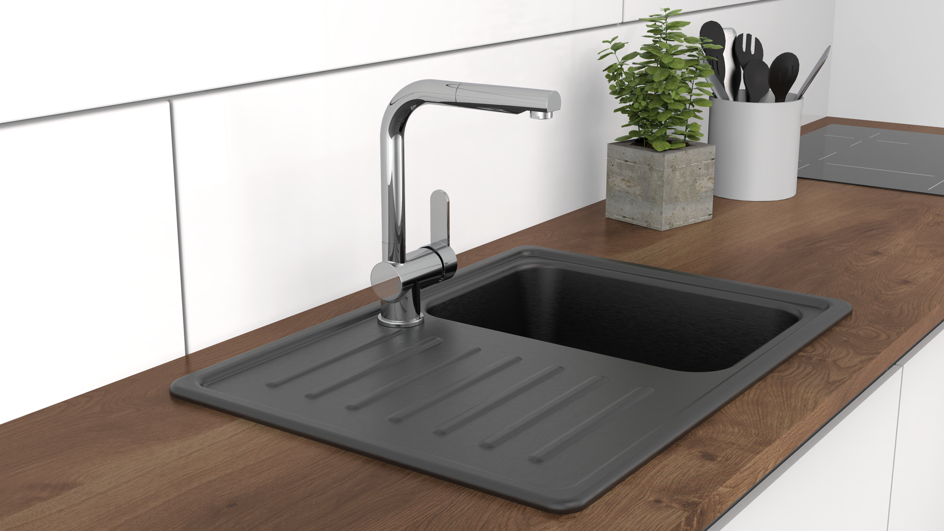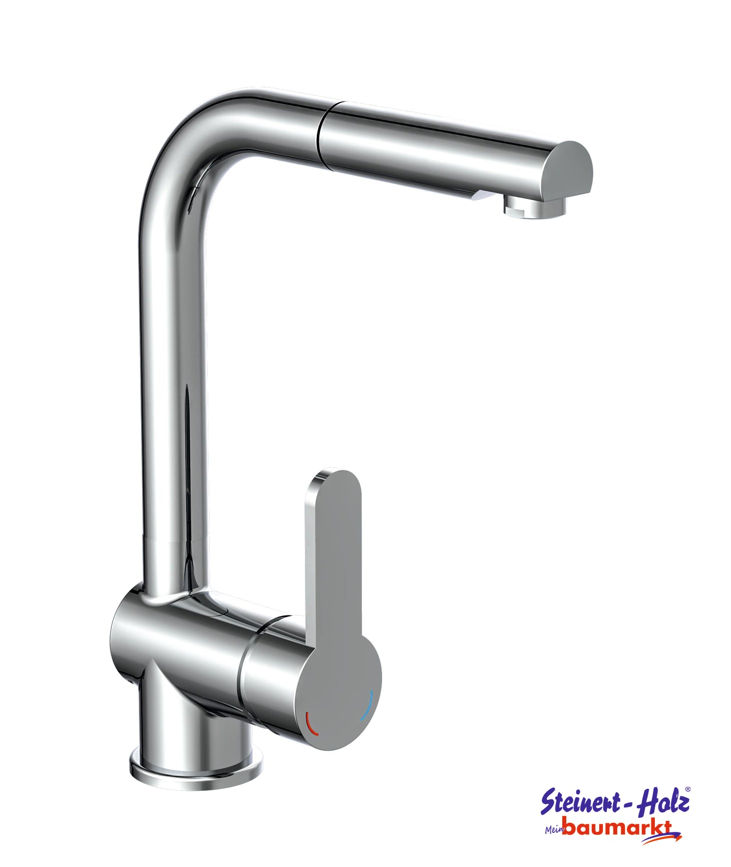 Ressourcenschonend handeln auch im Kleinen? Dann ist diese Einhebel-Mischbatterie mit Cold-Start Technik genau richtig, denn sie gewährt bei senkrechter Position des Bedienhebels nur den Zufluss von Kaltwasser. Oft völlig ausreichend. Mit dem 360° schwenkbaren Auslauf kann die Küchenarmatur komfortabel zur Seite gedreht werden und erleichtert z.B. das Säubern der Spüle. Dieser Wasserhahn ist ideal für den Einsatz bei Doppelspülbecken. Dank des herausziehbaren Auslaufs bietet der Wasserhahn flexible Einsatzmöglichkeiten in der Küche. Zum Beispiel zum Waschen von Obst und Gemüse oder aber für die Vorreinigung, bevor das Geschirr in den Geschirrspüler einsortiert wird. Durch den ausziehbaren Brauseschlauch (150 cm) hat die Geschirrbrause einen großen Aktionsradius und erleichtert so die Arbeit in der Küche. In der Mischbatterie Küche ist eine geräuscharme Qualitäts-Kartusche mit langlebigen, keramischen Dichtungen verbaut. Bei Bedarf kann die Kartusche selbständig gewechselt werden. Abgerundet wird der Wasserhahn für die Küche durch die einfache Montage. Die mitgelieferte Zentralverschraubung ist praktisch, selbsterklärend und kann ohne Fachkenntnisse schnell umgesetzt werden. Die in der Küchenarmatur verbaute Mischdüse vom Markenhersteller steht für Langlebigkeit und ein homogenes Strahlbild. Im Lieferumfang enthalten ist ein vollständiges Montageset und eine mehrsprachige, bebilderte Montageanleitung. Die korrosionsbeständigen Anschlussschläuche (500 mm) an das Hauswassersystem sind flexibel und leicht zu montieren.
