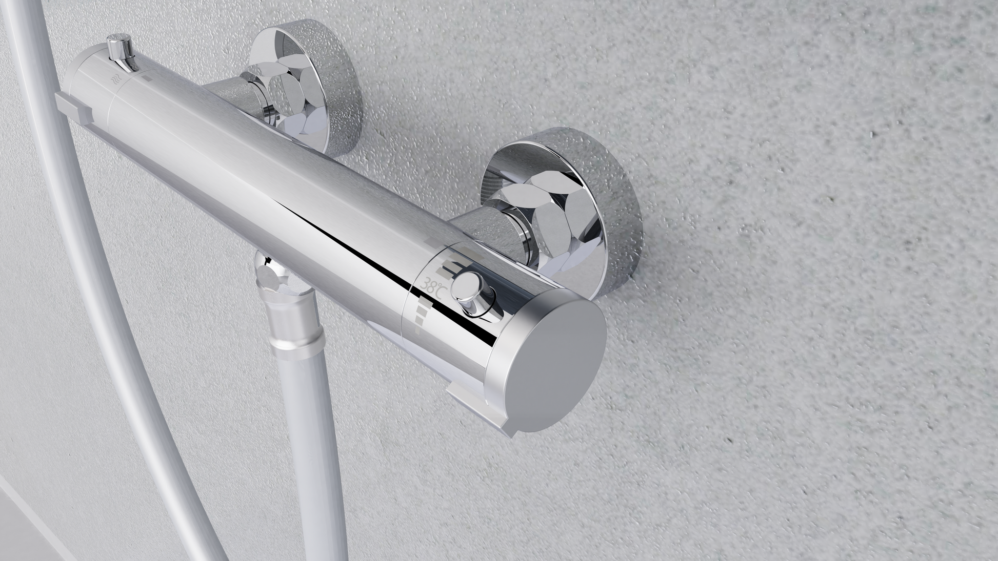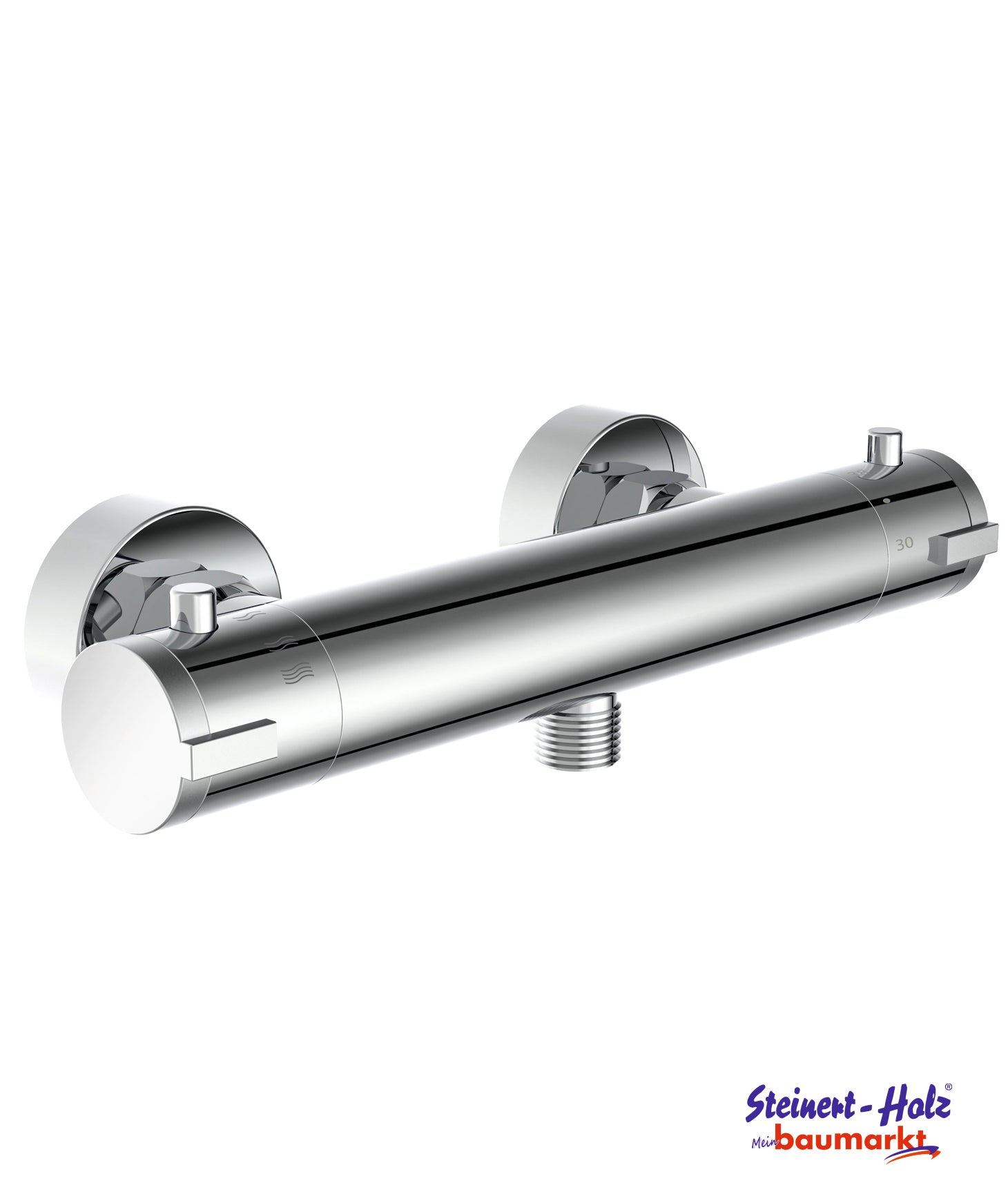 Die Badezimmer Armatur verfügt über ein in Europa hergestelltes Thermostat und steht für Qualität und Langlebigkeit. Die Badezimmer Armatur mit wassersparender Eco-Stopp-Funktion ist ein kleiner Beitrag für die Umwelt und schont den Geldbeutel. Ganz einfach während des Einseifens aktivieren, denn jeder Tropfen zählt. Die Thermostatarmatur ist werkseitig mit einer Temperatursperre bei 38° ausgestattet und minimiert damit das Risiko vor Verbrühungen - mehr Sicherheit für die ganze Familie. Für eine höhere Wassertemperatur kann die Sperre deaktiviert werden. Der genormte 1/2'' Brauseabgang ermöglicht den Anschluss vieler handelsüblicher Duschschläuche. In der Badarmatur sind langlebige, keramische Ventiloberteile verbaut mit genormten 1/2 Zoll Maß zum Öffnen und Schließen des Wasserzulaufs. Die Mischbatterie Bad mit Thermostat sorgt für eine konstante Wassertemperatur ohne unangenehme Temperaturschwankungen. Bei Bedarf kann das Thermostat selbständig ausgewechselt werden ohne Einsatz eines Fachbetriebs.
