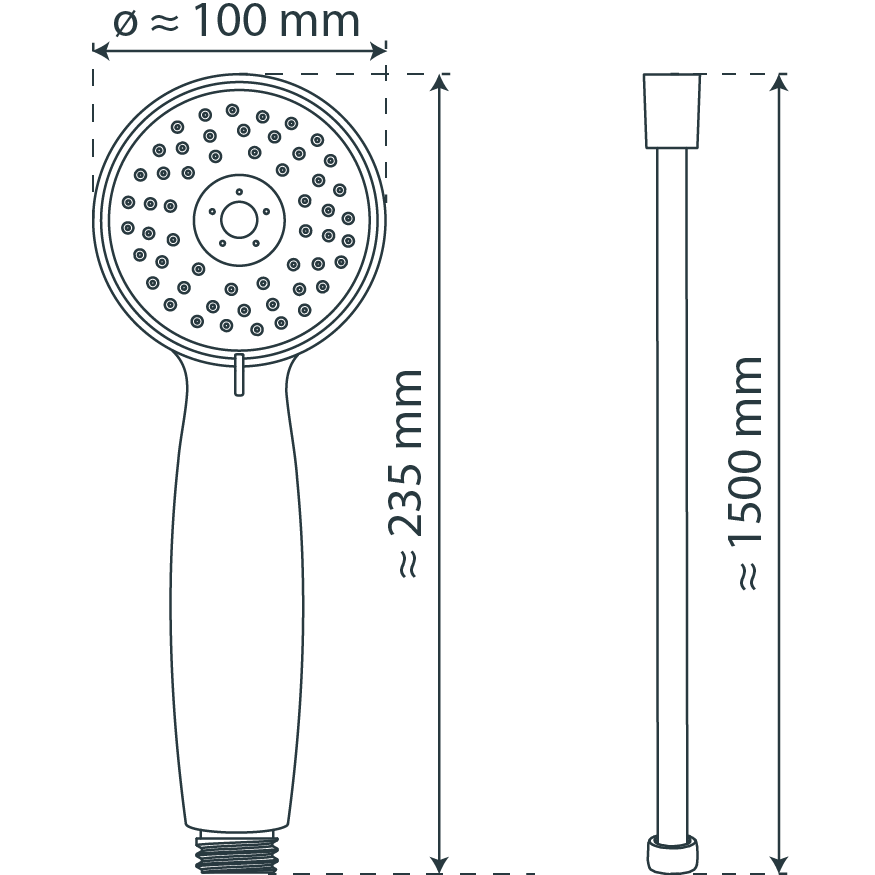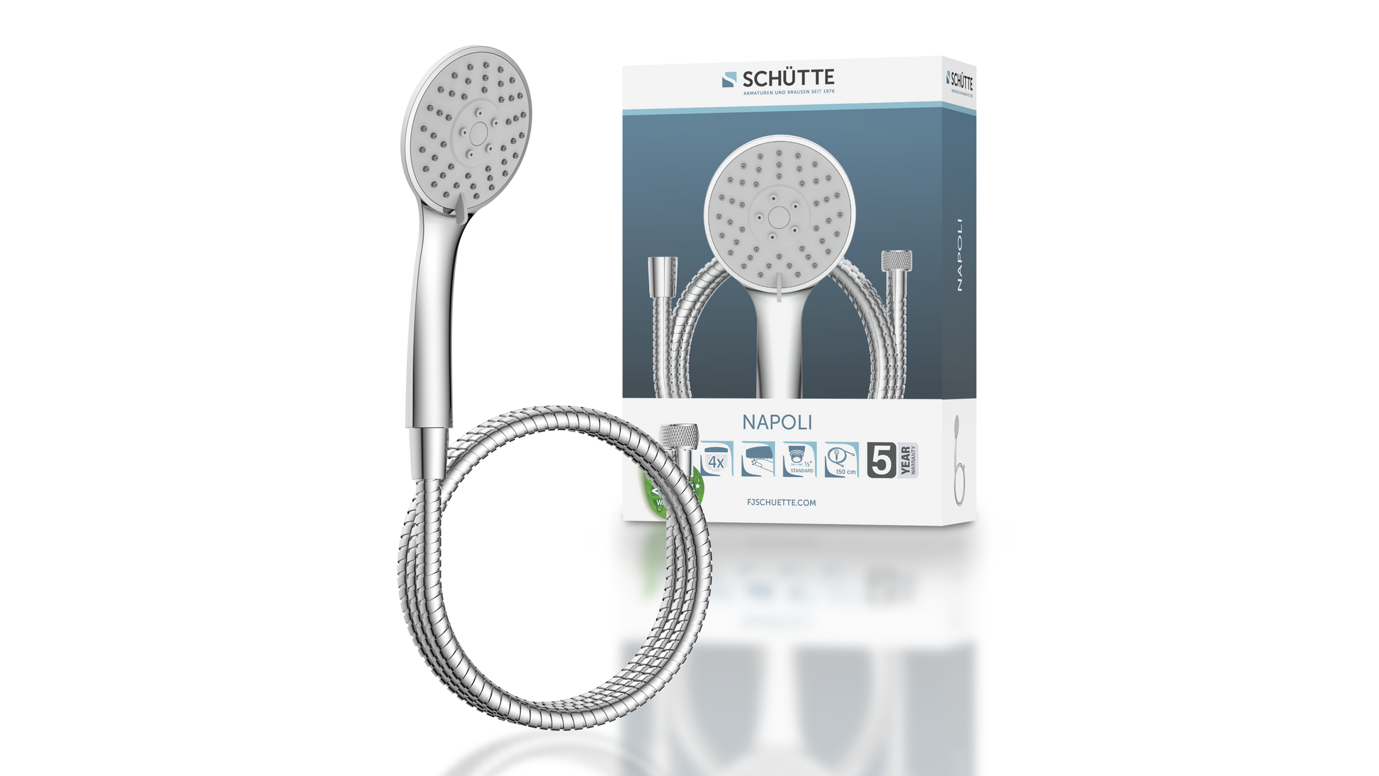 Der genormte 1/2 Zoll Anschluss ist mit handelsüblichen Brauseschläuchen kompatibel. Die Wellness Handbrause verfügt über drei Strahlarten, individuell einstellbar je nach Duschtyp. Die nachhaltige Wasserstopp-Funktion, z.B. beim Einseifen, spart Wasser und Energie. Gut für den Geldbeutel - gut für die Umwelt. Brausekopf mit Antikalk-Noppen für die einfache Entfernung von Kalkrückständen Der hochwertige Edelstahl-Brauseschlauch hat einen Standard ½ Anschluss (Ø ca. 1,9 cm) und ist besonders knickfest Länge: ca. 150 cm