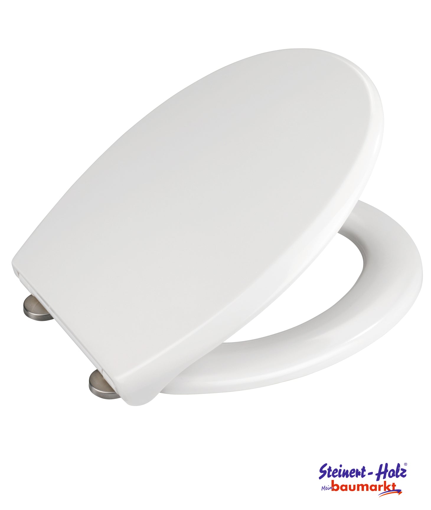 Klassischer WC-Sitz mit ovaler Deckelform aus antibakteriellem, hochwertigem Duroplast in dezentem Weiß